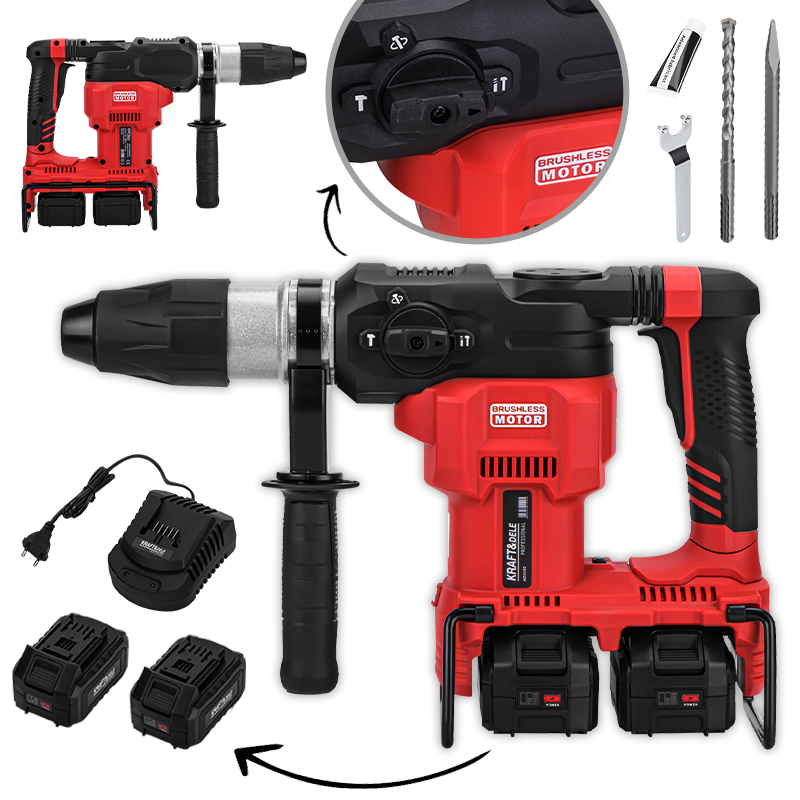 Sustav SDS-PLUS omogućuje brzu izmjenu pribora bez dodatnih alata, dok spojka za preopterećenje štiti korisnika i mehanizam od zaglavljivanja svrdla. Ergonomski dizajn i rad bez kabela osiguravaju slobodu kretanja i veću udobnost čak i u skučenim prostorima.