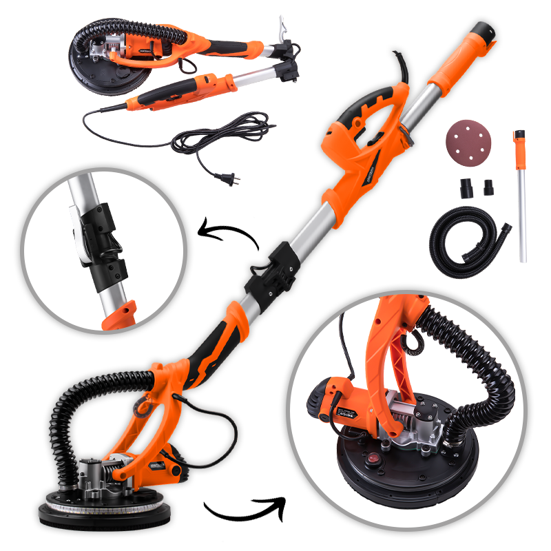 Brusilica 1750W s LED svjetlom dizajnirana je za brušenje zidova i stropova, uz mogućnost dosezanja teško dostupnih mjesta zahvaljujući svom produženom obliku. Integrirano LED svjetlo omogućuje rad u različitim uvjetima osvjetljenja, osiguravajući veću preciznost i kvalitetu obrade.