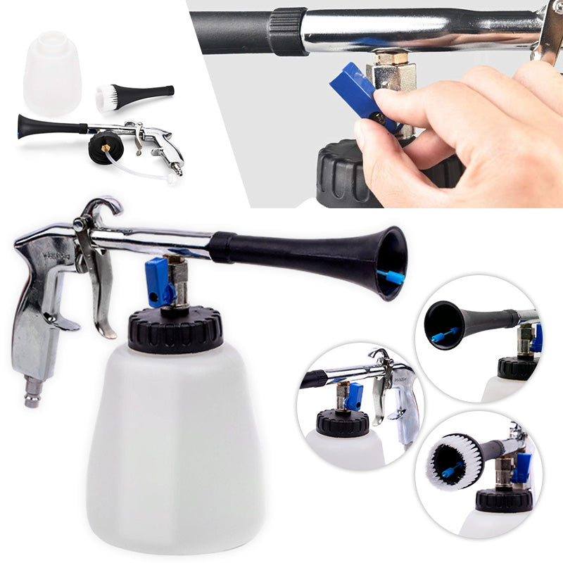 Pneumatski pištolj za pranje s kapacitetom od 1 L, nezamjenjiv alat za dubinsko čišćenje tapeciranog namještaja i unutrašnjosti automobila. Dizajniran za mokro čišćenje, ovaj pištolj bez problema uklanja sve vrste prljavštine, od karoserije do unutrašnjosti vozila, uključujući ventilacijske otvore, klima uređaje, retrovizore, plastične elemente, sjedala, presvlake, tepihe te čak i najtvrdokornije mrlje i krhotine.