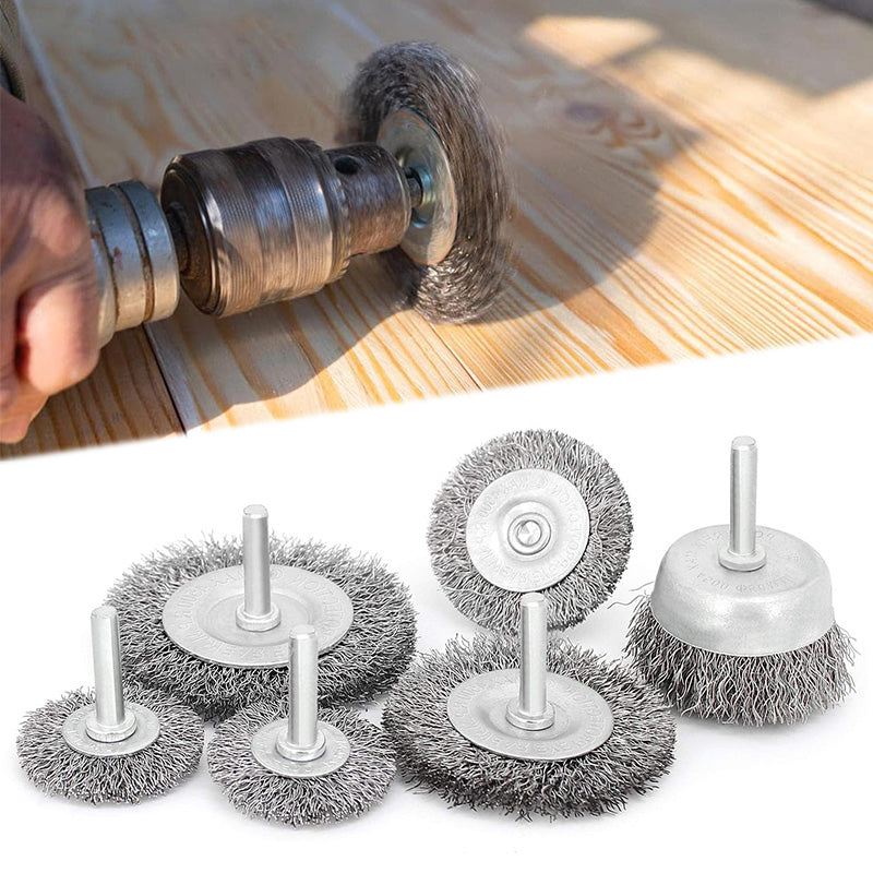 Ovaj set četki sa drškom idealan je za obradu metala, uklanjanje boje i rđe s površina. Izrađene su od čelične žice i dolaze u različitim promjerima kako bi se omogućila raznovrsna primjena. S drškom promjera 6 mm, lako se mogu koristiti s različitim alatima.