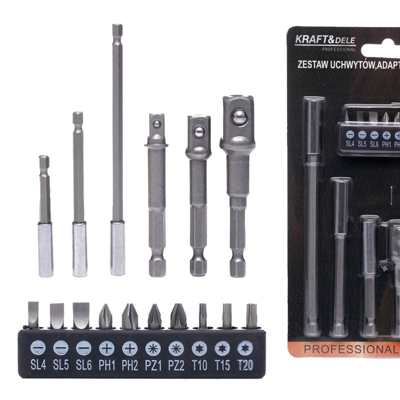 Set ručki, adaptera i bitova je vaš pouzdani partner u svakom projektu, donoseći preciznost i profesionalnost na dohvat ruke.
