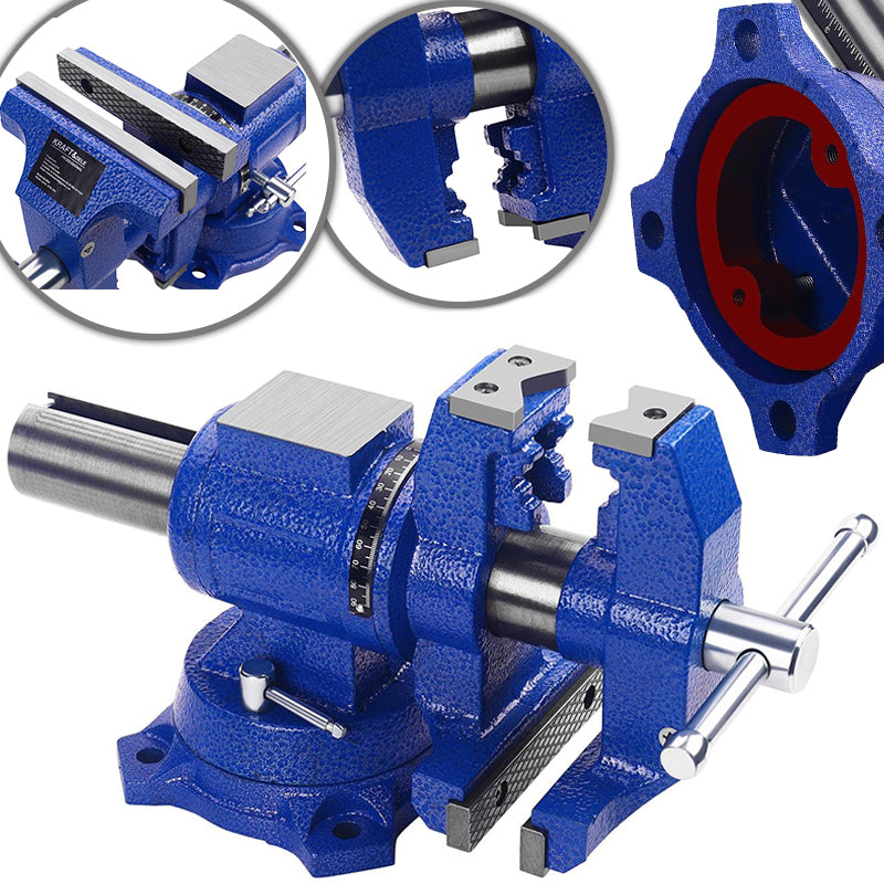 Širina čeljusti 125 mm (5") i rotirajuća baza 360° omogućuju sigurno stezanje obratka pod bilo kojim kutom.