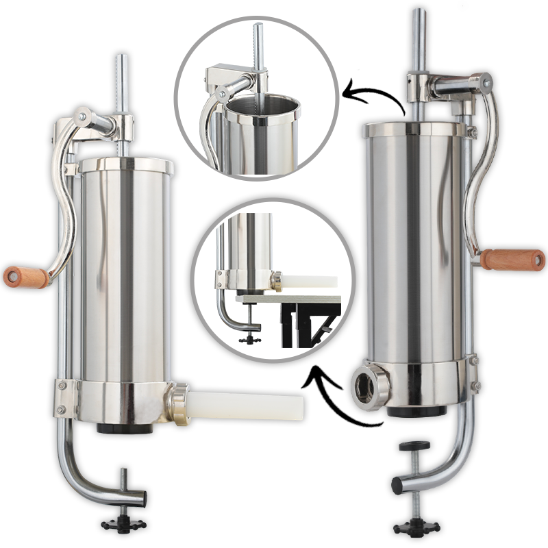 Uređaj se jednostavno pričvršćuje na radnu površinu pomoću dvostrukih učvršćenja, a zahvaljujući ručnom pogonu s korbom rad je siguran, stabilan i praktičan. Kapacitet od 4 kg čini ga idealnim za kućnu proizvodnju suhomesnatih proizvoda.